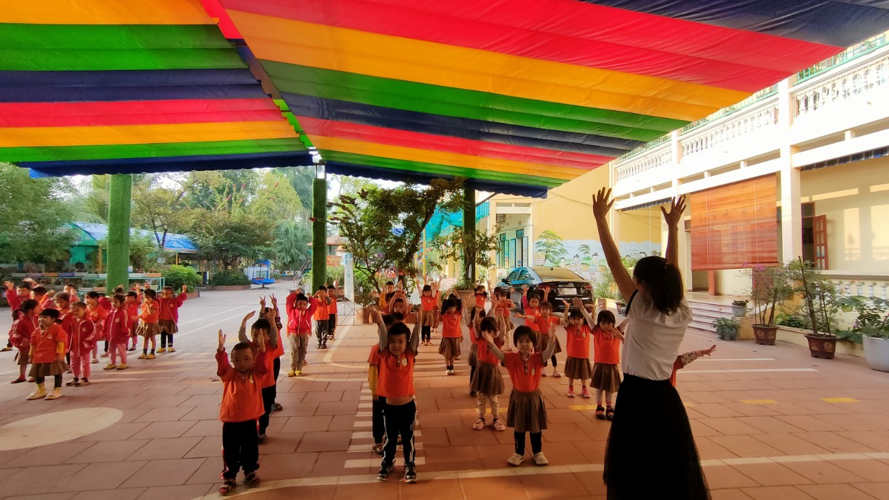 Thể dục buổi sáng là một hoạt động không thể thiếu trong hoạt động hằng ngày của trẻ. Qua hoạt động thể dục buổi sáng giáo dục trẻ sự chú ý, tính kiên định, có khả năng nâng cao về trí lực, làm nảy nở hứng thú và tình cảm. Bài thể dục sáng gồm 3 phần: Khởi động, trọng động, hồi tĩnh; bao gồm những động tác nhằm phát triển và rèn luyện các nhóm cơ chính: Cơ bả vai, cơ chân, cơ mình, phát triển hệ hô hấp.