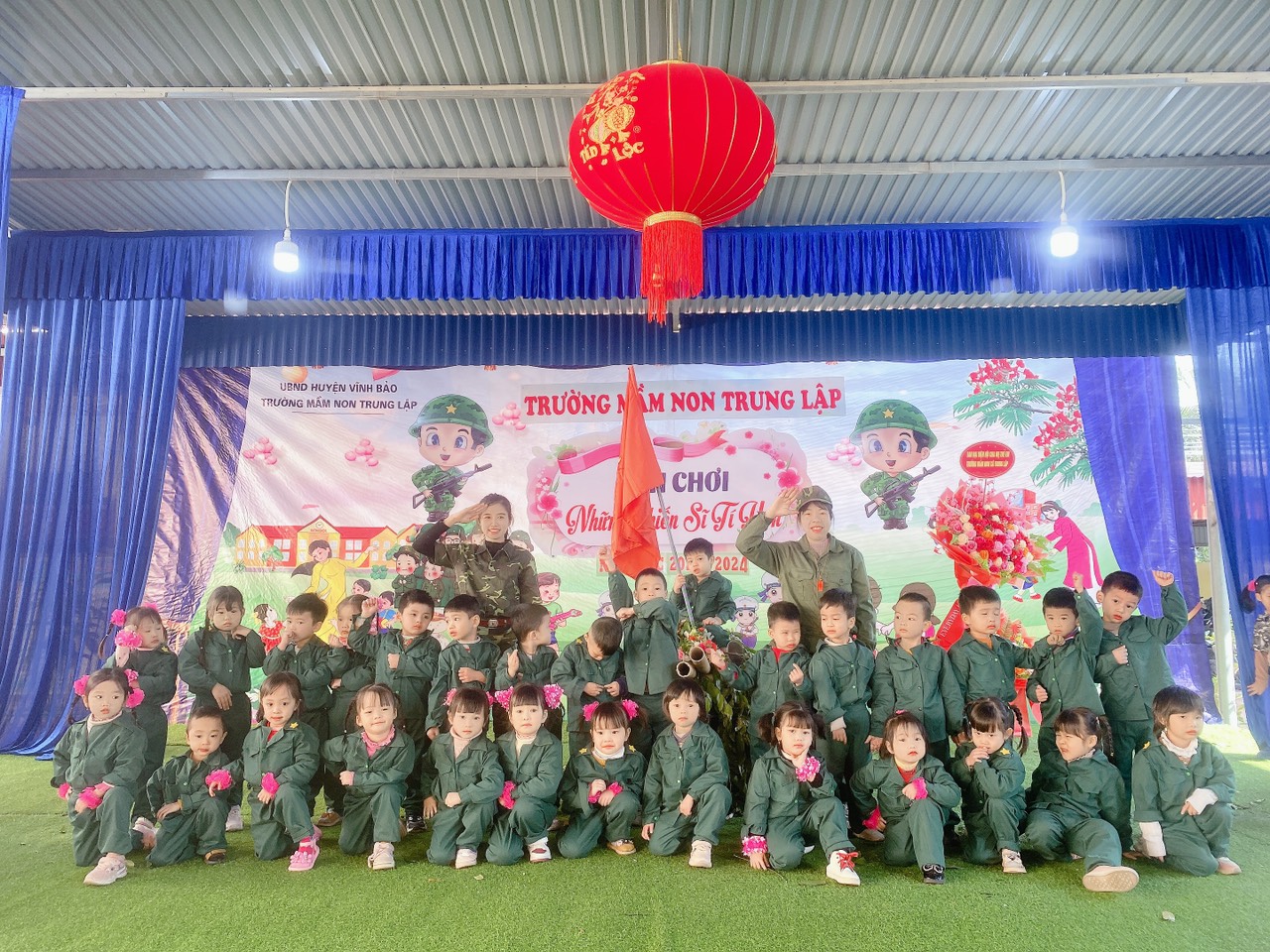 Với sự chuẩn bị chu đáo về chương trình, kịch bản, nội dung, đặc biệt là trang phục và các đồ dùng phục vụ ngày hội, nhà trường đã tạo nên một sân chơi vô cùng bổ ích, lý thú. Tại ngày hội không chỉ các bé mà các cô giáo, ban giám hiệu cũng đã hòa mình cùng các bé tham gia trải nghiệm làm các chú bộ đội tí hon. Mệt nhưng mà vui và chắc chắn những hoạt động tập thể vui nhộn, ý nghĩa này sẽ là những dấu ấn khó quên của các bé dưới mái trường mầm non, đúng với tinh thần học mà chơi, chơi mà học, để mỗi ngày đến trường luôn là niềm vui của các bé.