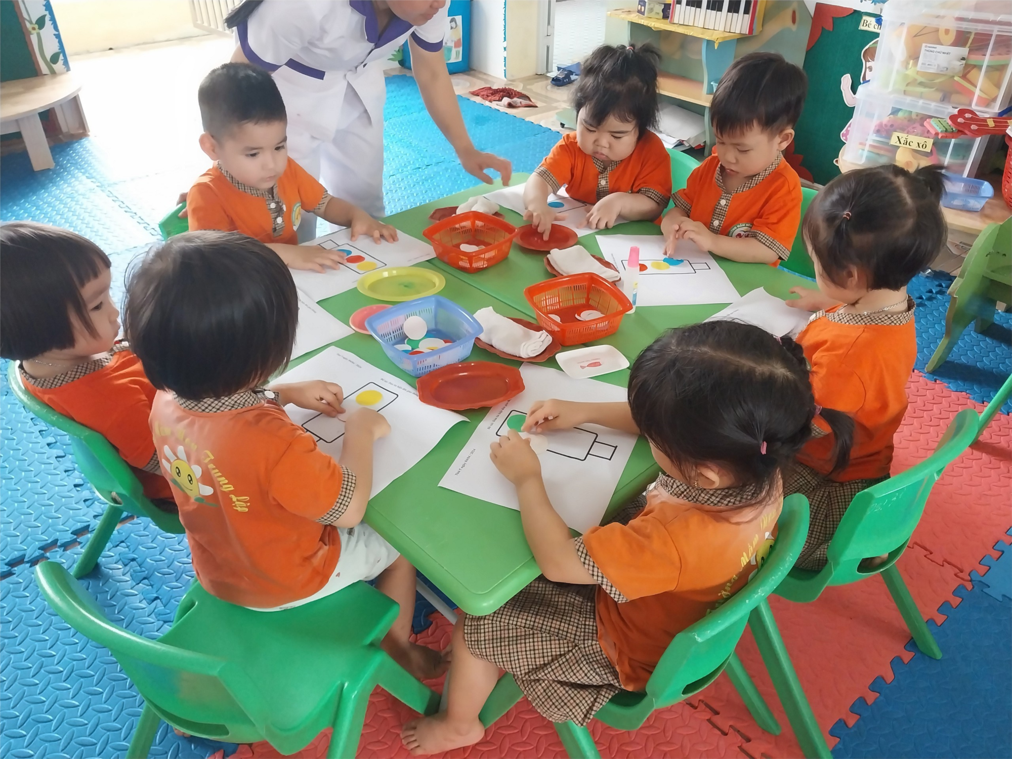 Dưới đây là một số hình ảnh về hoạt động “Dán đèn giao thông” tại lớp nhà trẻ D2: