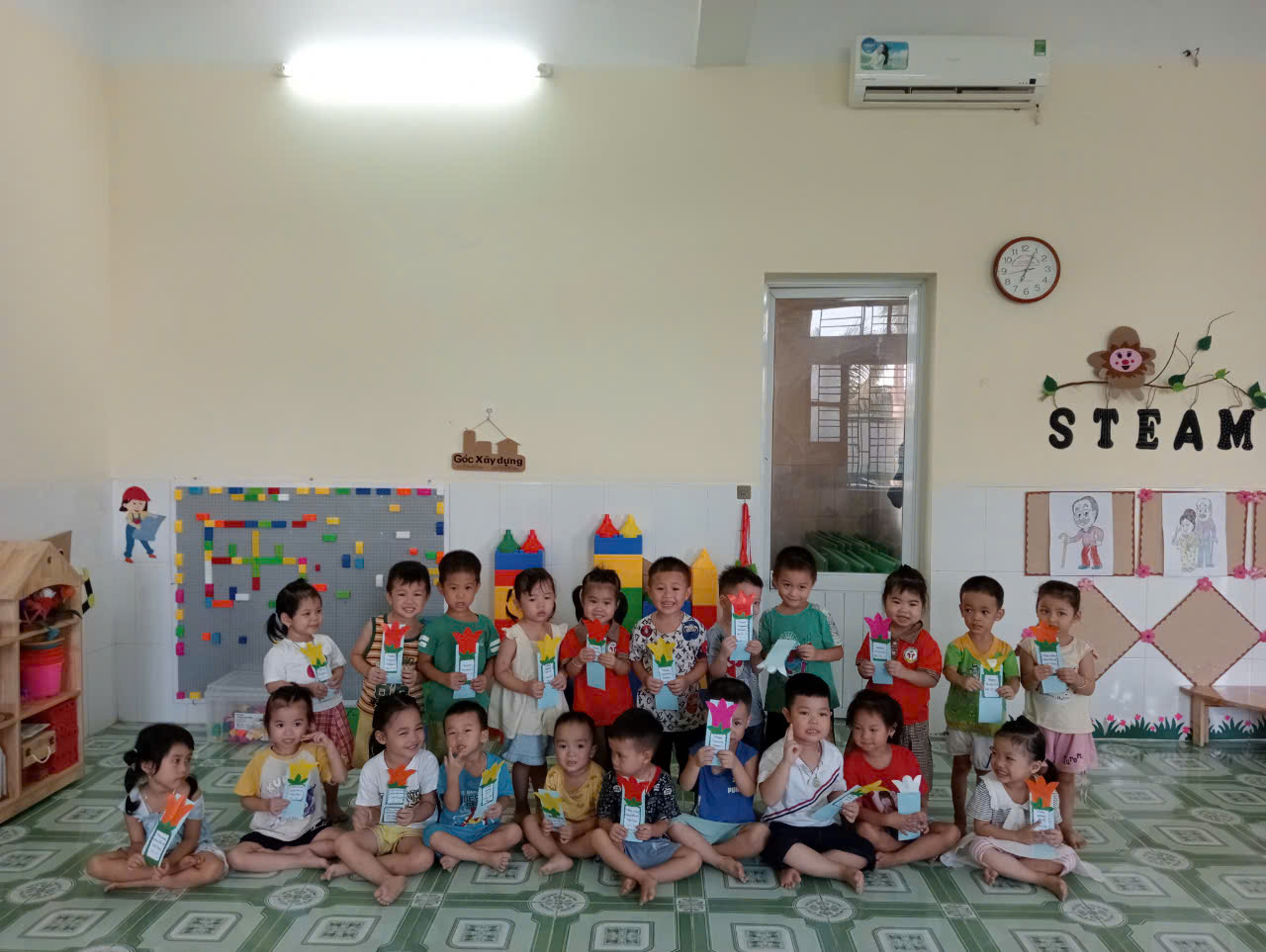 Sáng ngày 15 tháng 10 năm 2024, hai cô đã tổ chức cho các bạn nhỏ lớp C3 buổi trải nghiệm “Làm bưu thiếp tặng bà, tặng mẹ” nhân ngày 20/10. Bạn nào cũng hồ hởi, háo hức khi tự mình được làm ra món quà tặng bà, tặng mẹ. Các bạn ai cũng chăm chú lắng nghe và quan sát cô hướng dẫn cách làm để mình làm ra được những chiếc thiệp thật đẹp.
