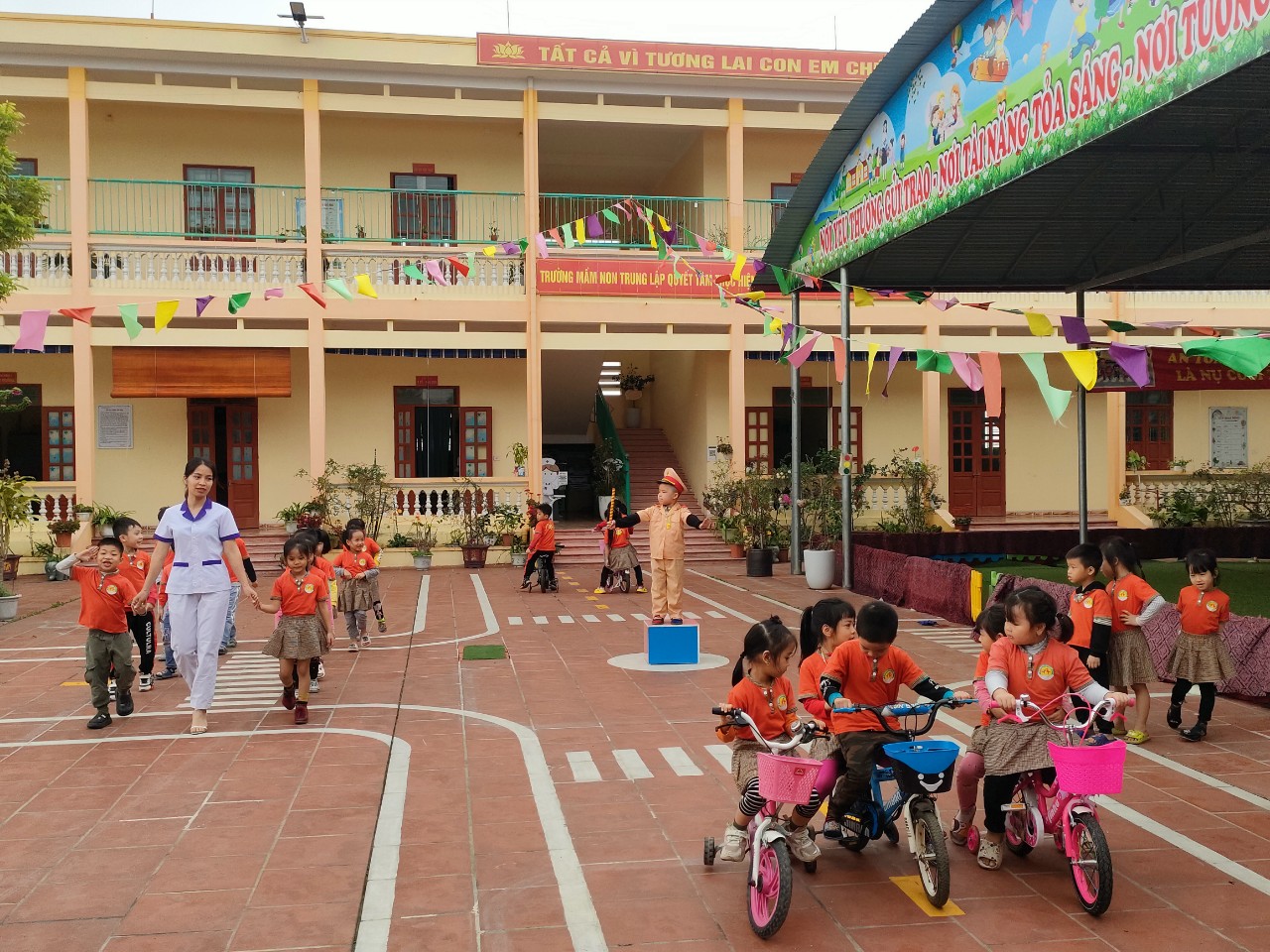 Năm học 2022-2023 là năm thứ hai thực hiện chương trình “ Tôi yêu Việt Nam” giai đoạn 2021-2024, tiếp tục thực hiện kế hoạch số 2017/KH/SGDDT ngày 23/9/2021 về việc triển khai chương trình " Tôi yêu Việt Nam" trong cấp học giáo dục mầm non năm học 2021-2022 và thực hiện kế hoạch số 113/KH/SGDDT ngày 30/9/2022 về việc triển khai chương trình " Tôi yêu Việt Nam" trong cấp học giáo dục mầm non năm học 2022-2023; Kế hoạch số 560/KH- PGDĐT-MN ngày 1/10/2021 về việc triển khai chương trình tôi yêu Việt Nam giai đoạn 2021-2024; Kế hoạch số 529/KH- PGDĐT-MN ngày 13/10/2022 về việc triển khai chương trình tôi yêu Việt Nam năm học 2022-2023. Trường Mầm non Trung Lập tổ chức lồng ghép Báo cáo giải pháp sáng tạo và chuyên đề “Tôi yêu Việt Nam” nhằm tăng cường các hoạt động trải nghiệm giáo dục an toàn giao thông, giúp giáo viên và học sinh nâng cao nhận thức về Luật Giao thông đường bộ và văn hóa khi tham gia giao thông;