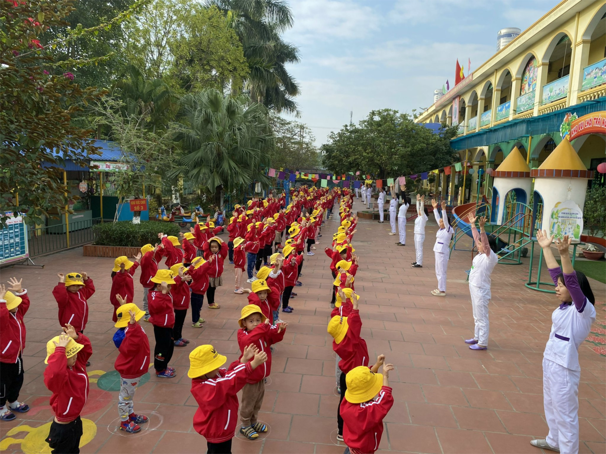 Thể dục buổi sáng đối với trẻ là hoạt động tập thể đầu tiên để khởi động cho một ngày mới tại trường mầm non, hoạt động này ngoài việc rèn luyện sức khỏe, thói quen tốt còn tạo cho trẻ tâm thế thoải mái, sự hứng khởi để sẵn sàng tham gia các hoạt động cùng cô và các bạn.