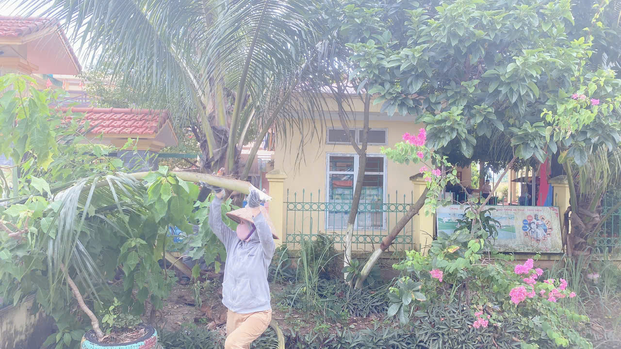 Với sức gió mạnh và lượng mưa lớn, cơn bão đã gây ra thiệt hại không nhỏ về môi trường xung quanh và khu vực trường học. Nhiều cây cối trong khuôn viên trường đã bị gãy đổ, sân trường trở nên ngổn ngang với các cành cây lớn nhỏ nằm la liệt, gây cản trở cho việc đi lại và sinh hoạt trong trường.Trước tình hình đó, đồng chí hiệu trưởng đã huy động tập thể cán bộ, giáo viên, nhân viên, phối kết hợp với phụ huynh học sinh của trường đã ngay lập tức triển khai công tác khắc phục sau bão. Bất chấp những khó khăn về thời tiết, các cô giáo đã chung tay góp sức, khẩn trương bắt tay vào dọn dẹp khuôn viên trường học. Từng cành cây gãy đổ đã được thu gom, những thanh sắt bị sập đổ cũng được di dời, và các khu vực ảnh hưởng được làm sạch một cách nhanh chóng và an toàn.