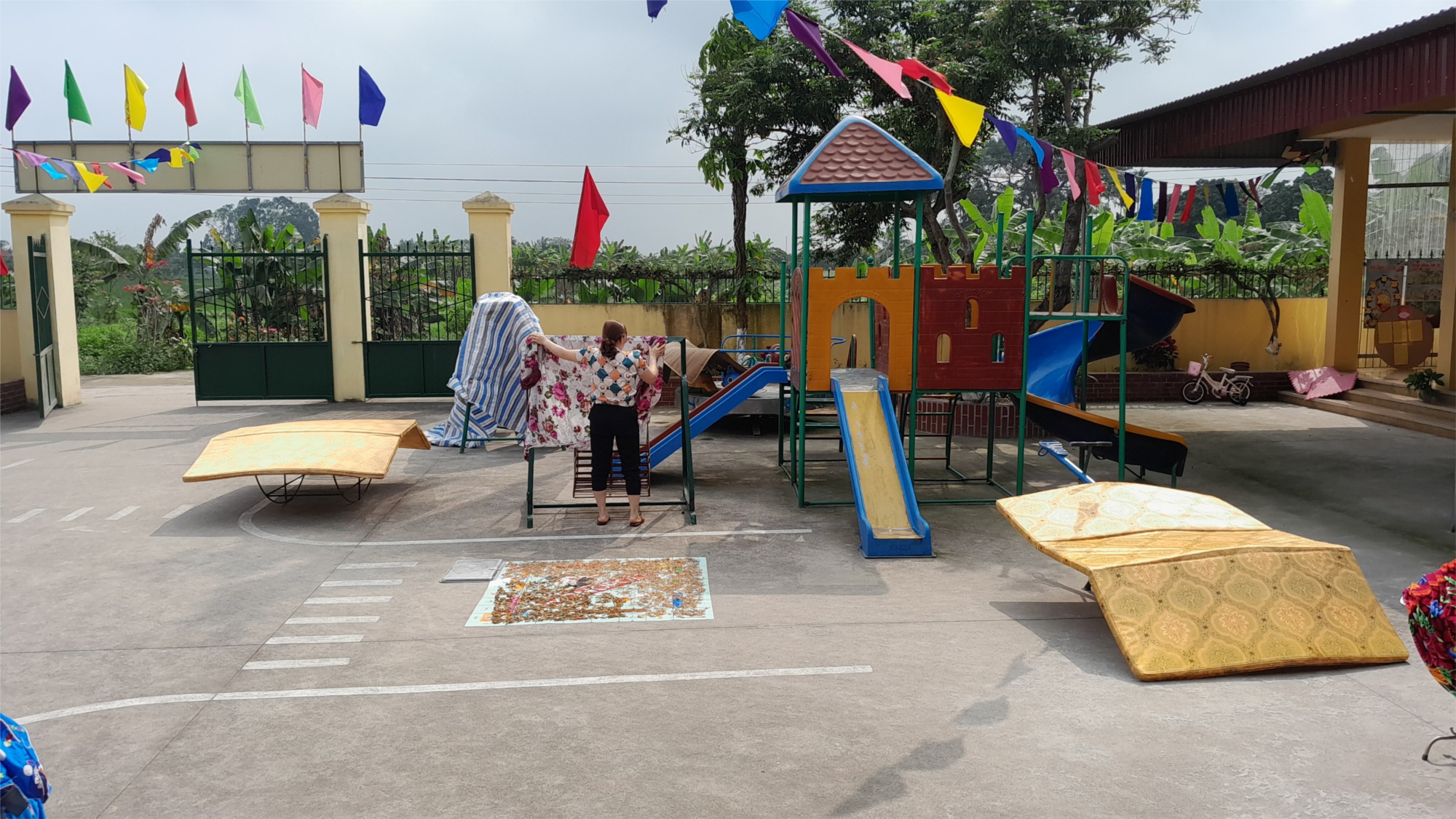 Ảnh: Vệ sinh các khu vực chơi của trẻ