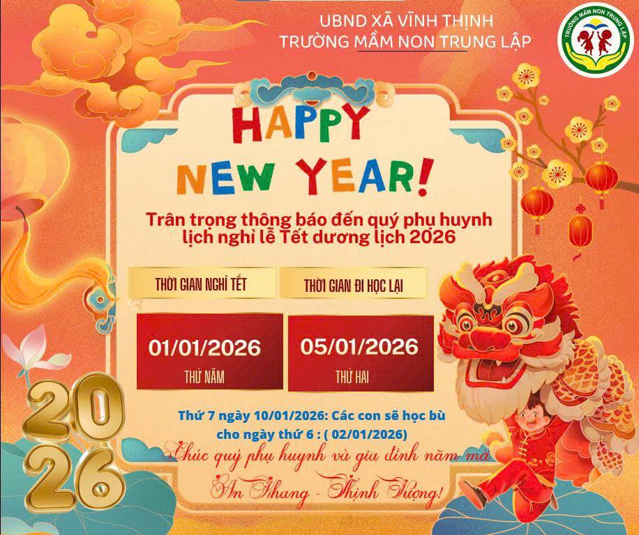 Thực hiện Công văn số 10125/SGDĐT-VP về thời gian nghỉ Tết Dương lịch năm 2026, nhà trường trân trọng thông báo:
