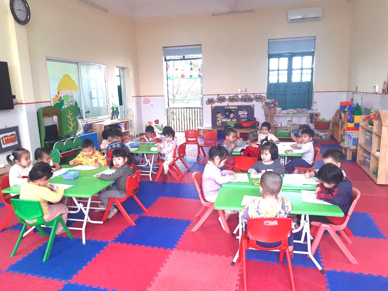 Dưới đây là một số hình ảnh các bạn nhỏ lớp NTD3 hăng say tham gia giờ tạo hình: Di màu tàu hoả