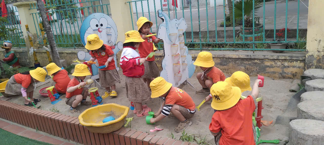 Một số hình ảnh trẻ lớp 3 tuổi C3 tham gia giờ hoạt động ngoài trời: