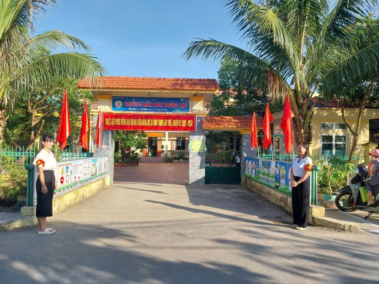 Tại Trường Mầm non Trung Lập – xã Vĩnh Thịnh, mỗi sáng và chiều, cổng trường luôn rộn ràng tiếng cười trẻ thơ xen lẫn hình ảnh đẹp: các cô giáo và bác bảo vệ luôn tận tình hướng dẫn phụ huynh xếp xe gọn gàng, nhắc nhở giữ an toàn giao thông.