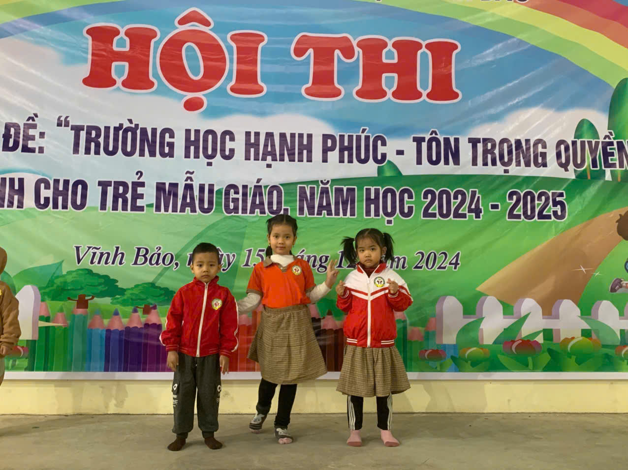 Tham gia hội thi vẽ tranh "TRƯỜNG HỌC HẠNH PHÚC - QUYỀN CON NGƯỜI" do Phòng giáo dục tổ chức. Lớp 5 tuổi A4 có sự tham gia của 3 trẻ: bạn Phạm Quỳnh Chi, bạn Nguyễn Hồng Diệp và bạn Vũ Đình Hải Đăng.