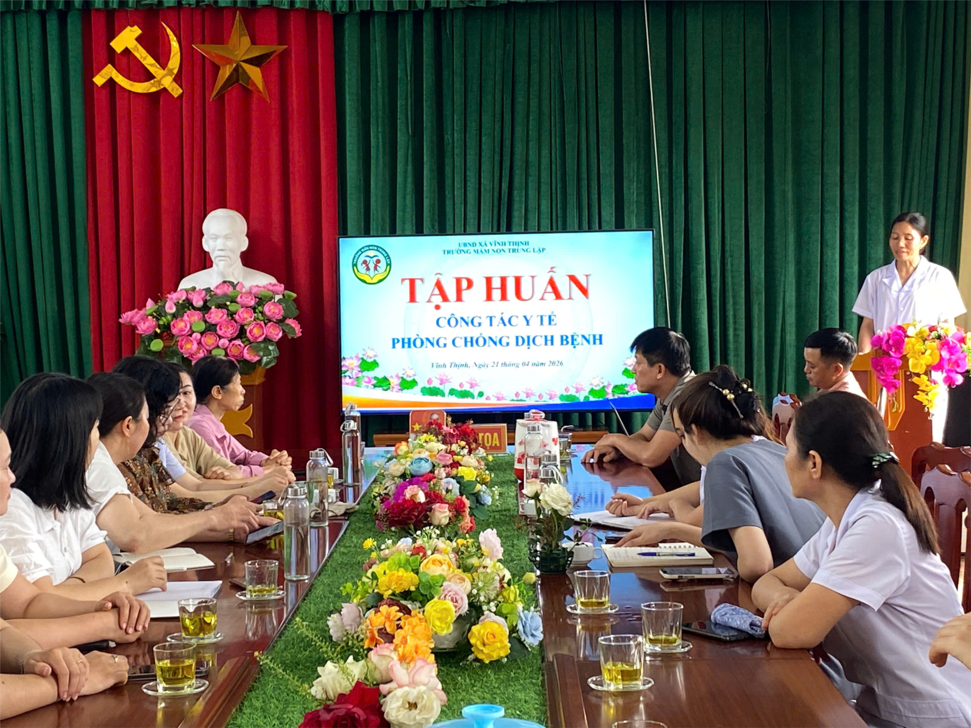 Sáng ngày 21/4/2026, Trường Mầm non Trung Lập đã tổ chức buổi tập huấn công tác y tế, phòng chống dịch bệnh và sơ cấp cứu dành cho cán bộ, giáo viên, nhân viên và đại diện phụ huynh học sinh.